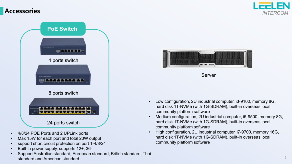 برای پروژههای بزرگ (مانند مجتمعهای مسکونی) که نیاز به اجرای پلتفرم نرمافزاری مدیریت محلی دارند، LEELEN سرورهای صنعتی رکمونت ۲ یونیت (2U) در سه سطح پیکربندی ارائه میدهد:
