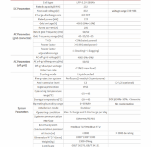 سیستم ذخیرهسازی انرژی مایعخنک بر پایه طراحی یکپارچه (All-in-one) ساخته شده و شامل ادغام بسیار بالای ۵ پک باتری مایعخنک، یک کنترلر فرعی، یک PCS، یک BMS، یک EMS، یک واحد خنککننده مایع و تجهیزات کمکی الکتریکی برای ساختار کابینت میباشد.
